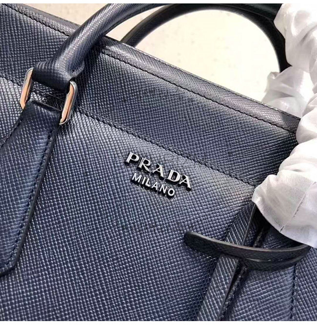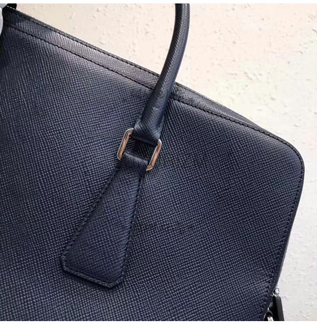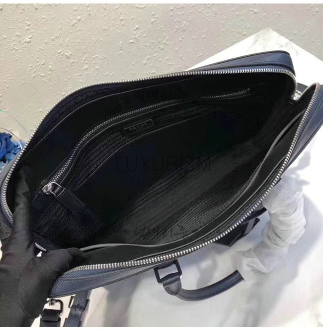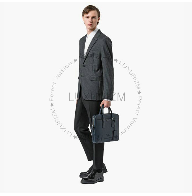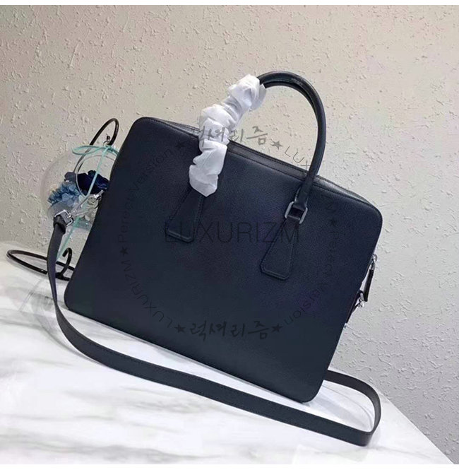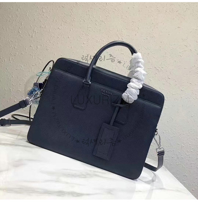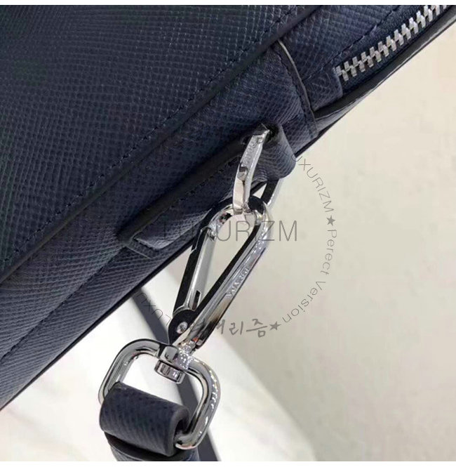 [스페셜오더]PRADA-2VE368 프라다 사피아노 꾸이르 가죽 다크 메탈 로고 네이비 브리프케이스