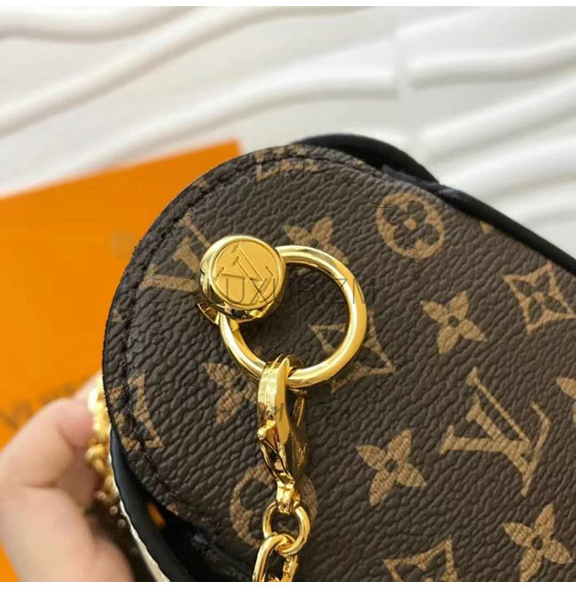 모노그램 코팅 캔버스 및 에피 가죽 외피 송아지 가죽 트리밍 초극세사 섬유 안감 골드