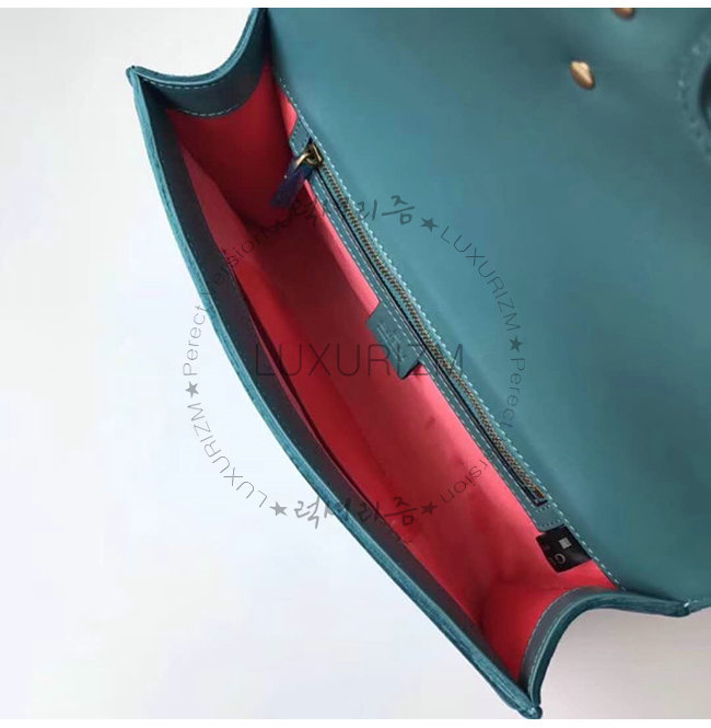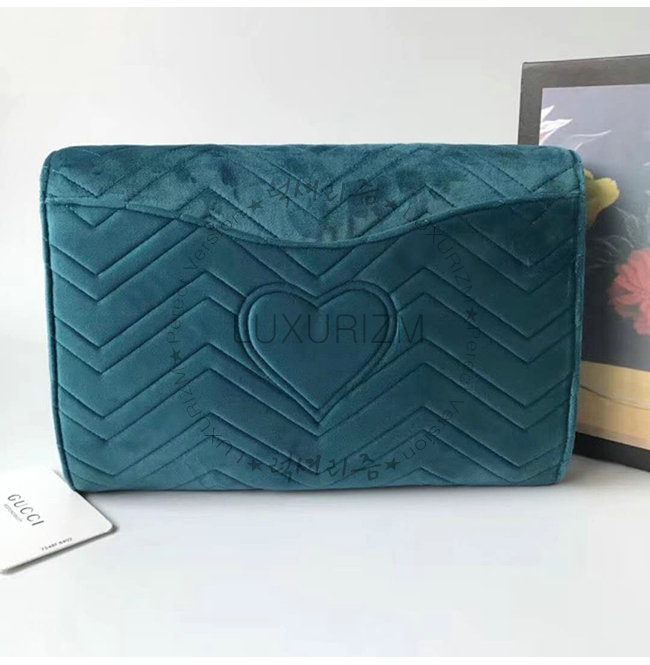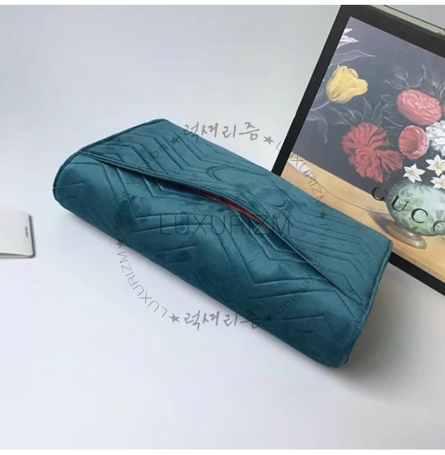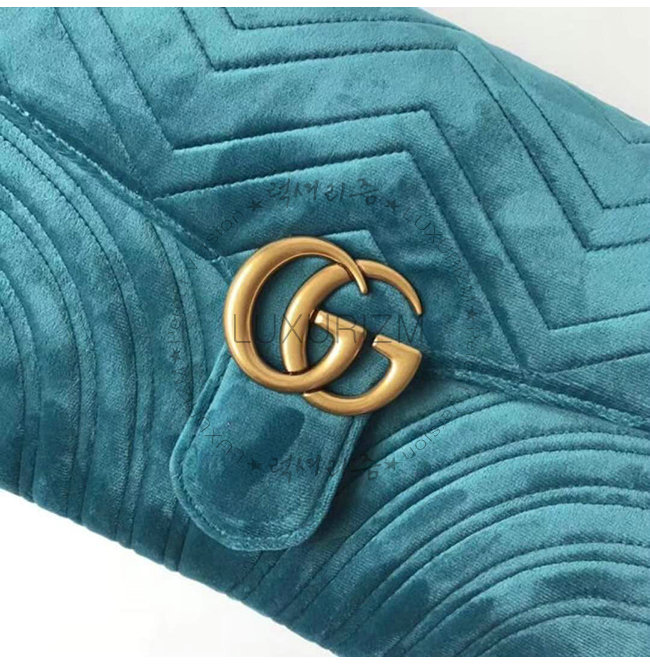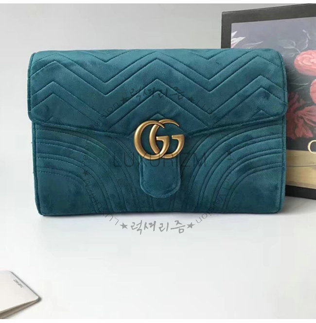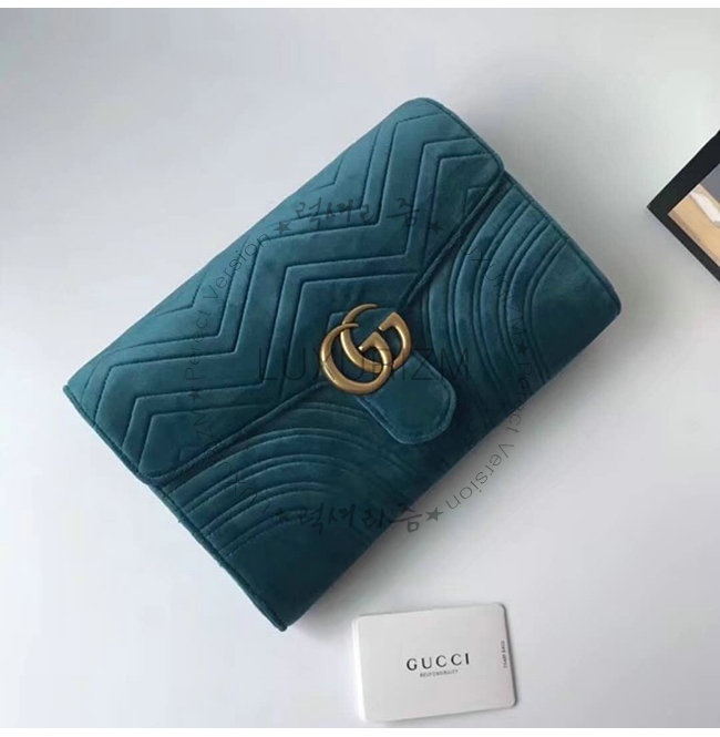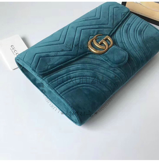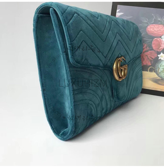 [스페셜오더]GUCCI-498079 4430 구찌 GG 마몽 페트롤 블루 벨벳 클러치