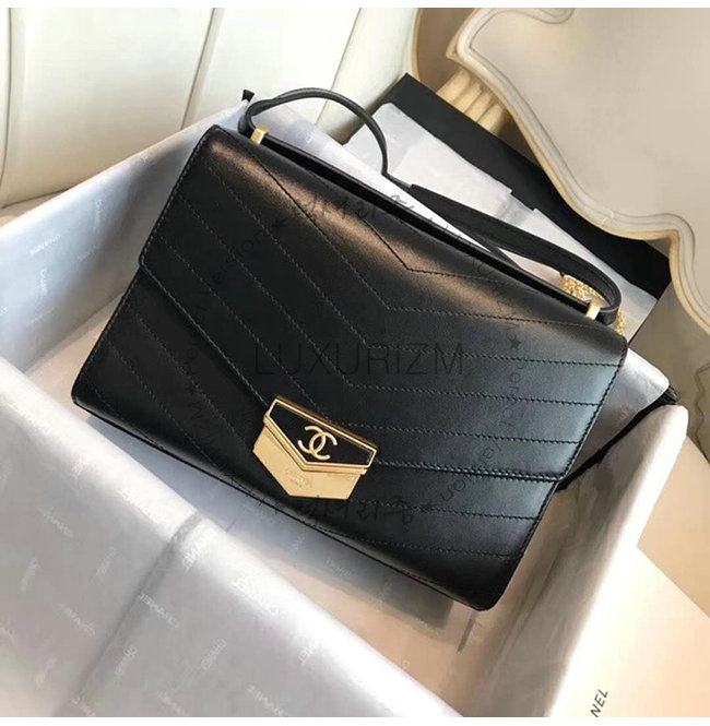 [스페셜오더]CHANEL-A57491 샤넬 블랙 카프스킨 골드메탈 미디엄 플랩백