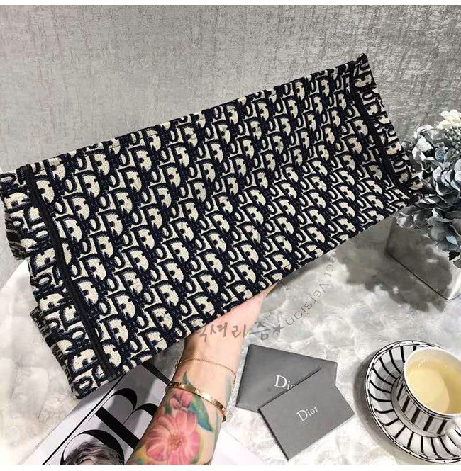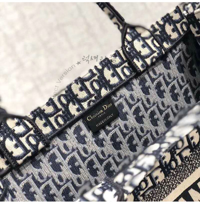 오블리크 디올 로고 자수 패브릭 디올 북 토트 백
