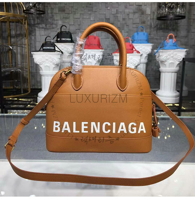[스페셜오더]BALENCIAGA-518873 발렌시아가 브라운 그레인드 송아지 가죽 빌 탑 핸들백 S
