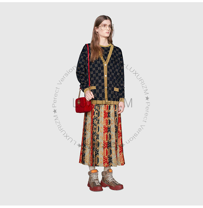 쉐브론 벨벳 가죽 트리밍 앤틱 골드톤 메탈 장식 더블G 스페셜 에디션
