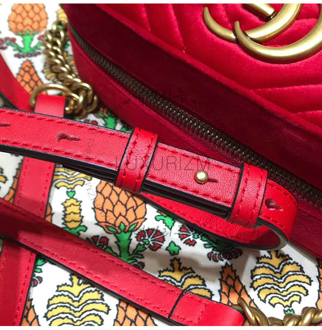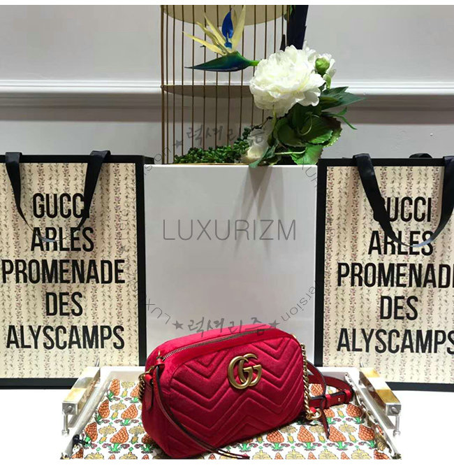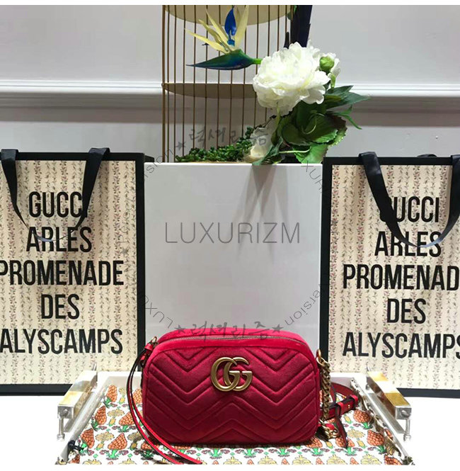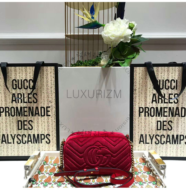 [스페셜오더]GUCCI-447632 6433 구찌 GG Marmont 레드 벨벳 스몰 숄더 백