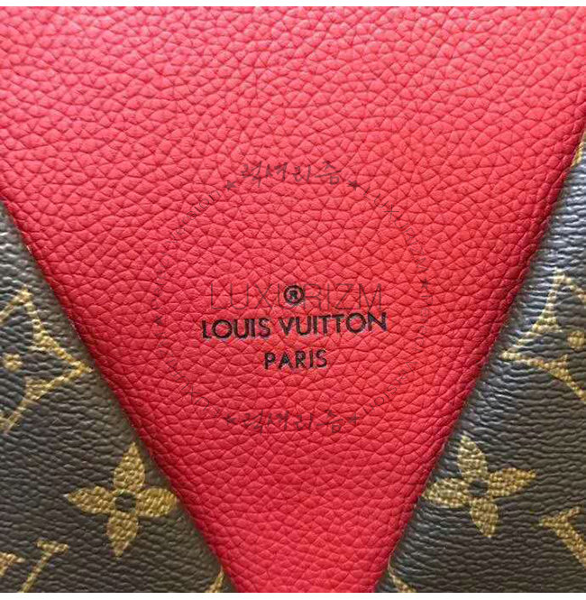 Vuitton의 V에서 영감을 받은 V 토트 핸드백입니다. 모노그램 캔버스와 결을 살린 가죽