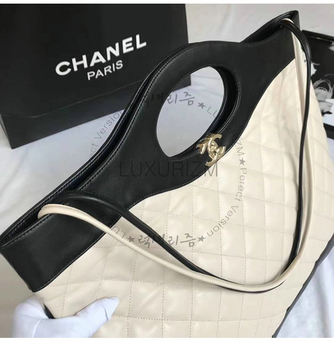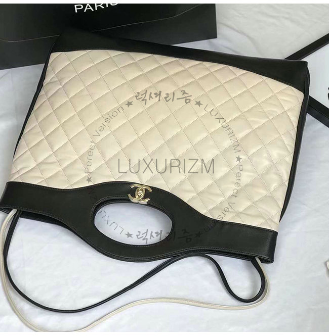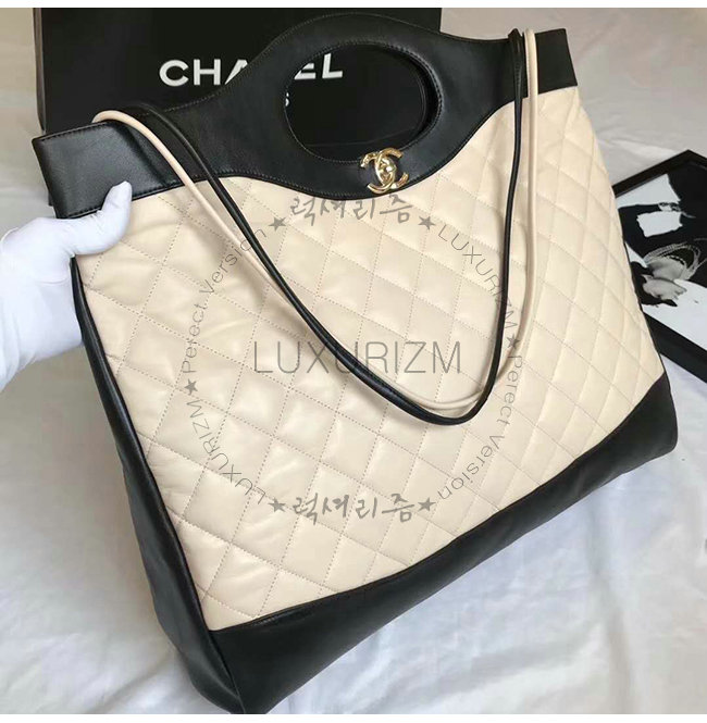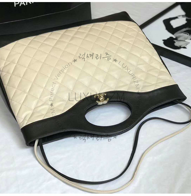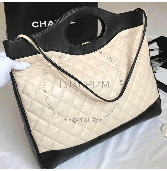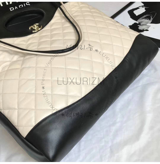 [스페셜오더]CHANEL-A57978 샤넬 블랙 아이보리 램스킨 CHANEL 46 라지 토트백