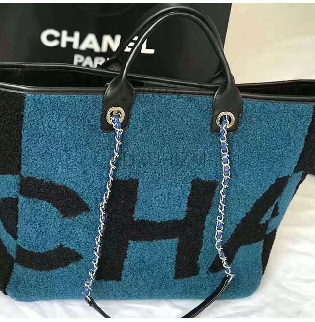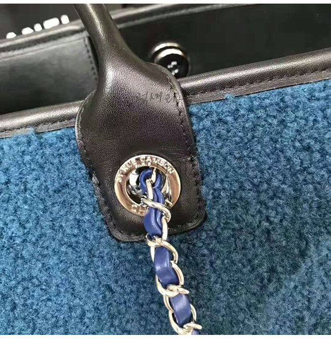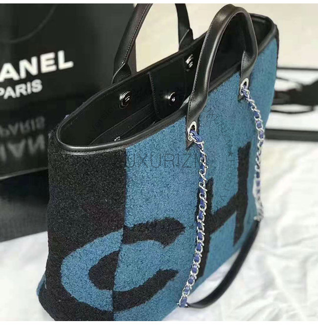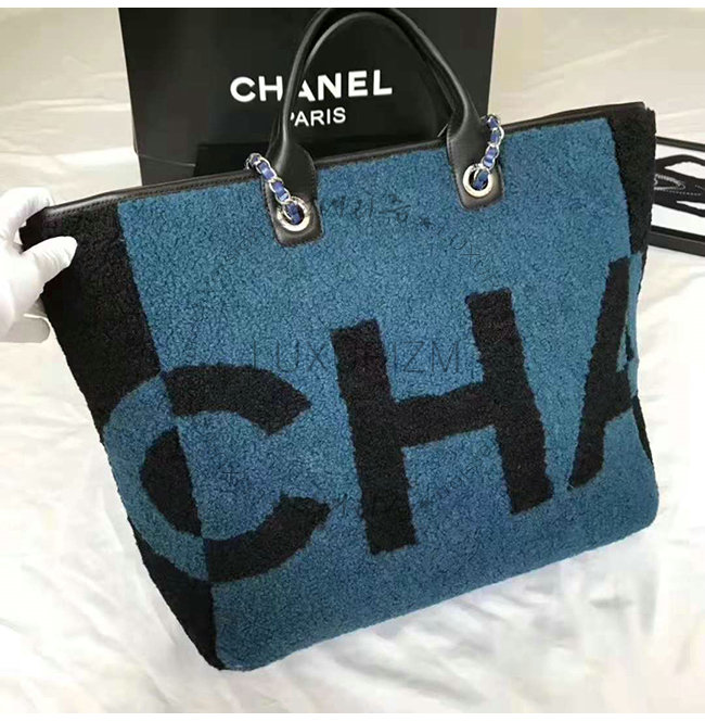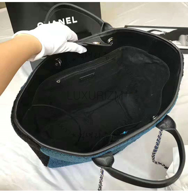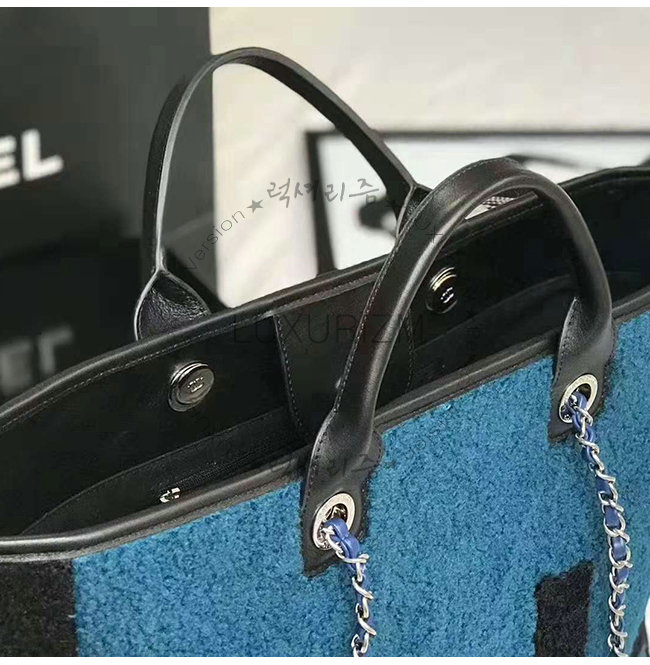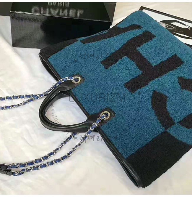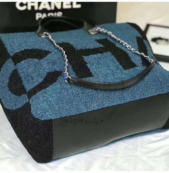 [스페셜오더]CHANEL-A57161 샤넬 블루 시어링 램스킨 실버메탈 라지 토트백