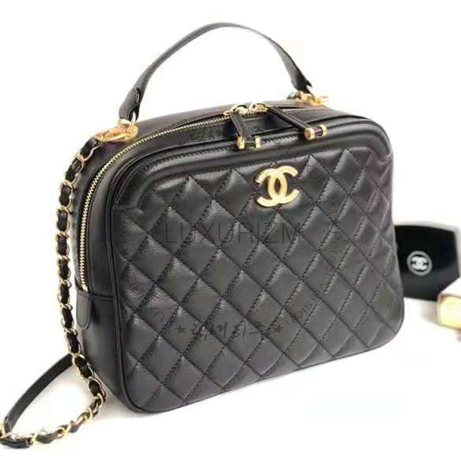 [스페셜오더]CHANEL-A57906 샤넬 블랙 카프스킨 골드메탈 미디엄 코스메틱 케이스