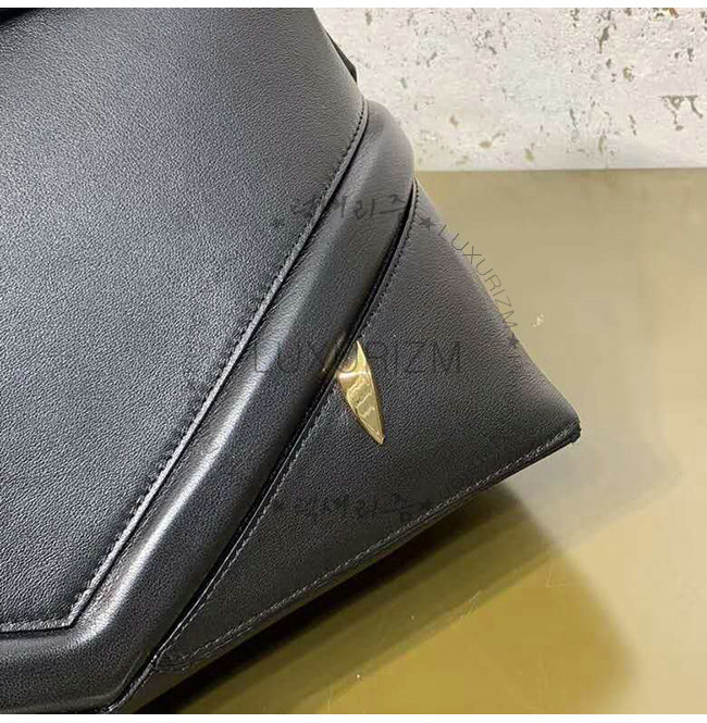 블랙 카프 레더로 제작되었으며, 엠보싱 된 인레이와 메탈 스터드로 제작됩니다.
