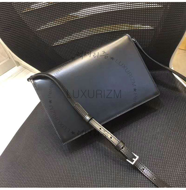 양각으로 새겨진 생 로랑 시그니처, 길이 조절 가능한 스트랩, 플랩 클로저의