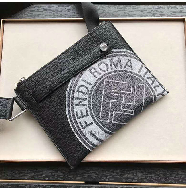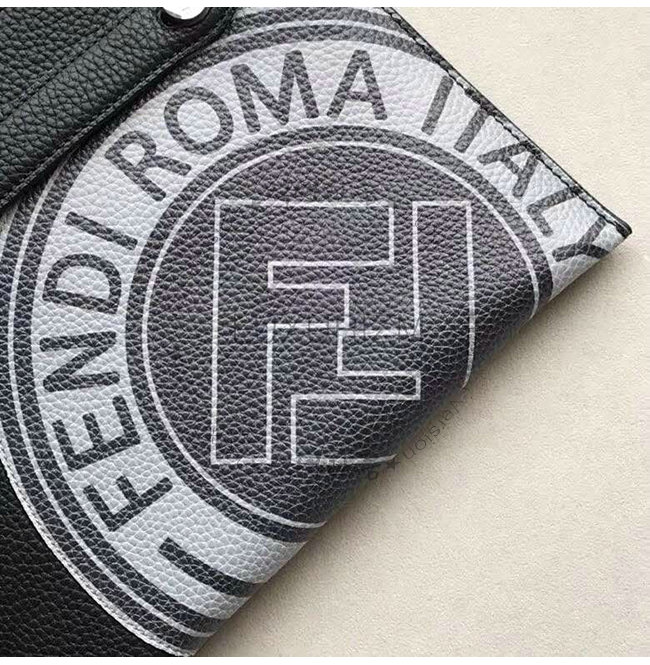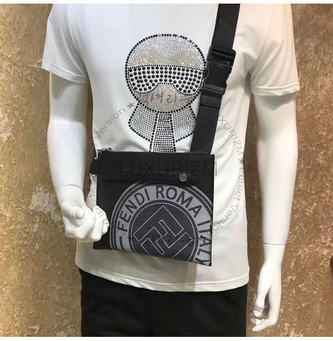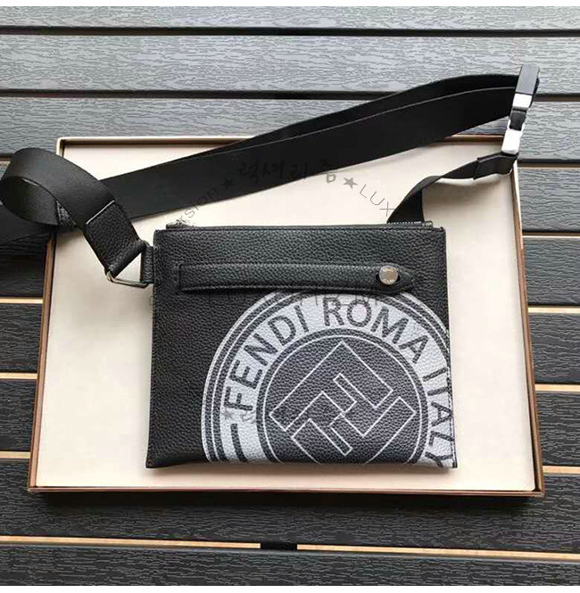 [스페셜오더]FENDI-7VA437 펜디 블랙 로마노 가죽 스탬프 인레이 패치 메신저백