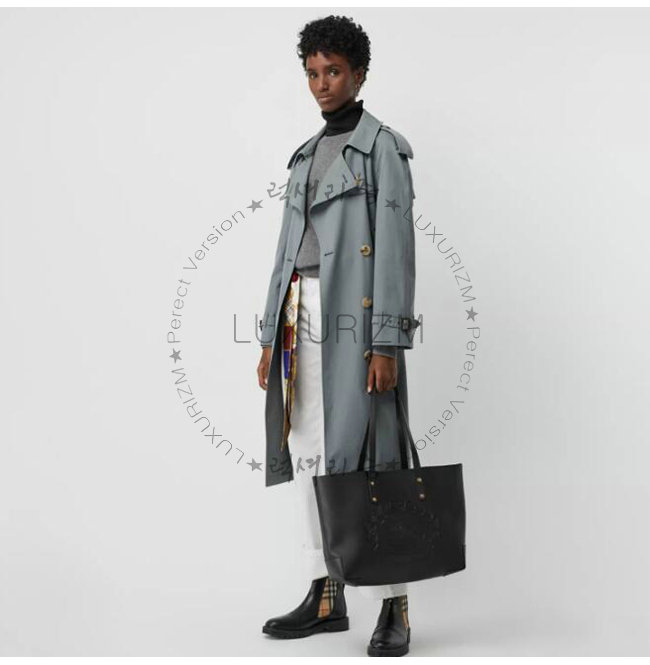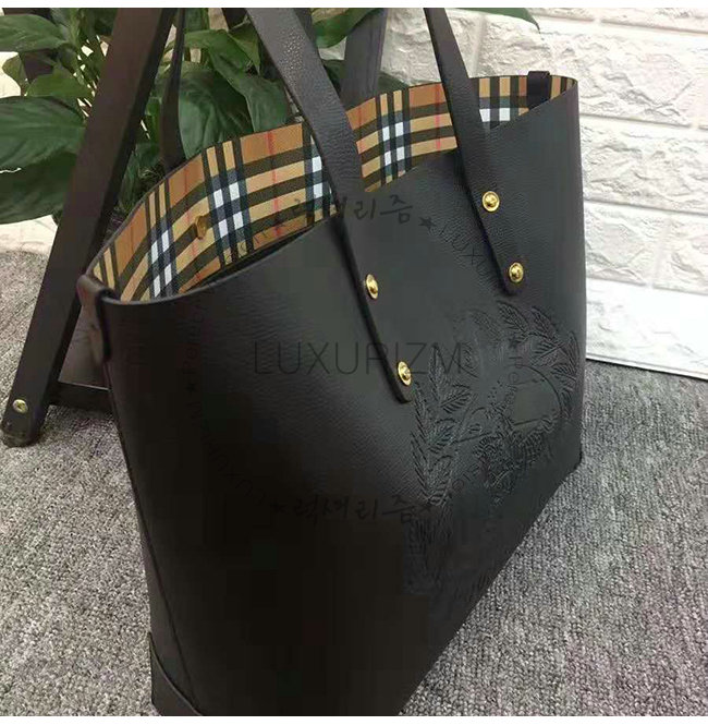 BURBERRY-40801091 버버리 블랙 송아지 가죽 스몰 엠보싱 크레스트 토트