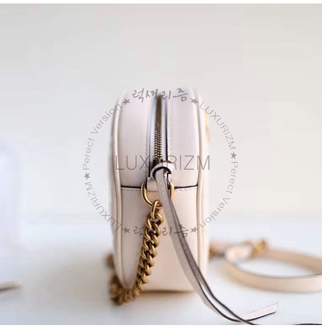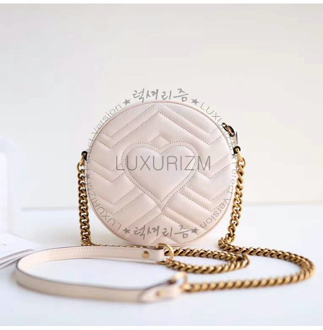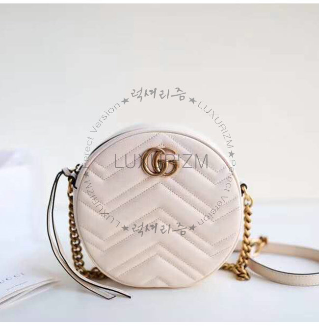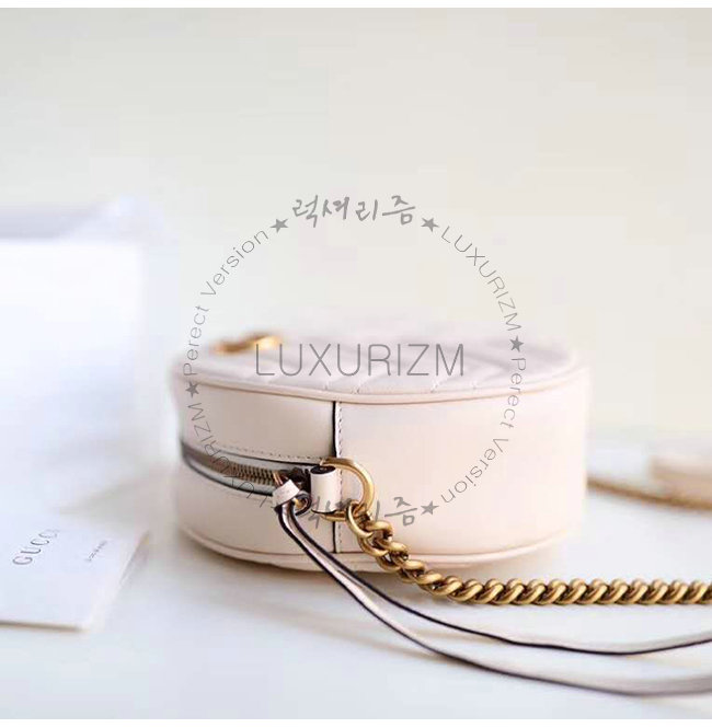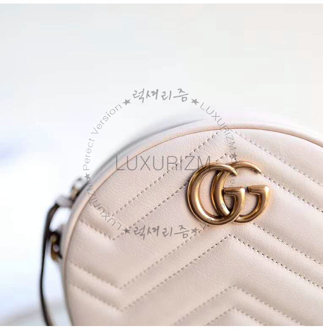 [스페셜오더]GUCCI-550154 9022 구찌 GG 마몽 화이트 마틀라세 쉐브론 가죽 미니 라운드 숄더백