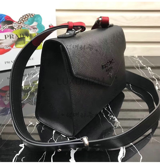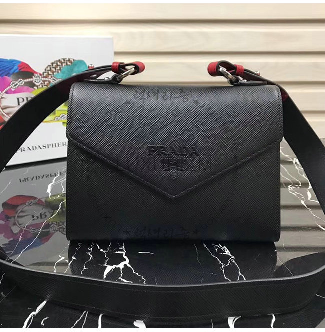 [스페셜오더]PRADA-1BD186 프라다 블랙 사피아노 가죽 모노크롬 백