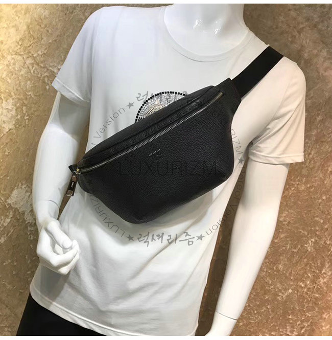 지퍼 잠금식 벨트 백. 길이 조절 가능 벨트. 로마노 가죽 소재.메탈