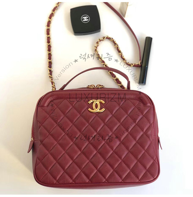 [스페셜오더]CHANEL-A57906 샤넬 버건디 카프스킨 골드메탈 미디엄 코스메틱 케이스