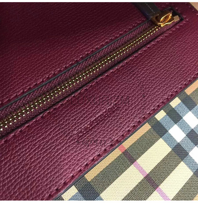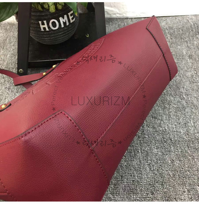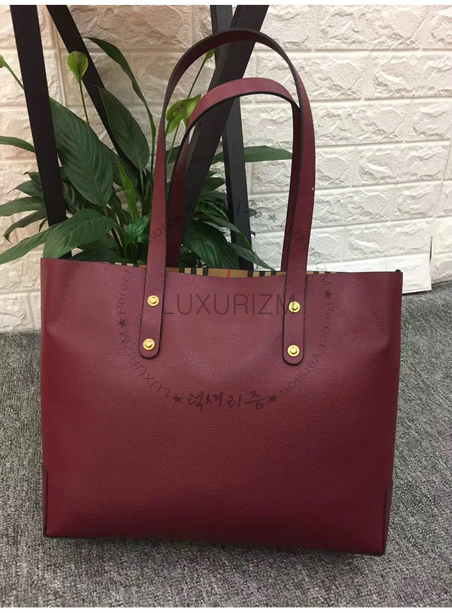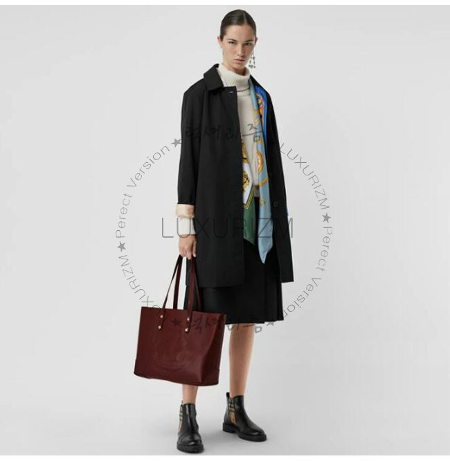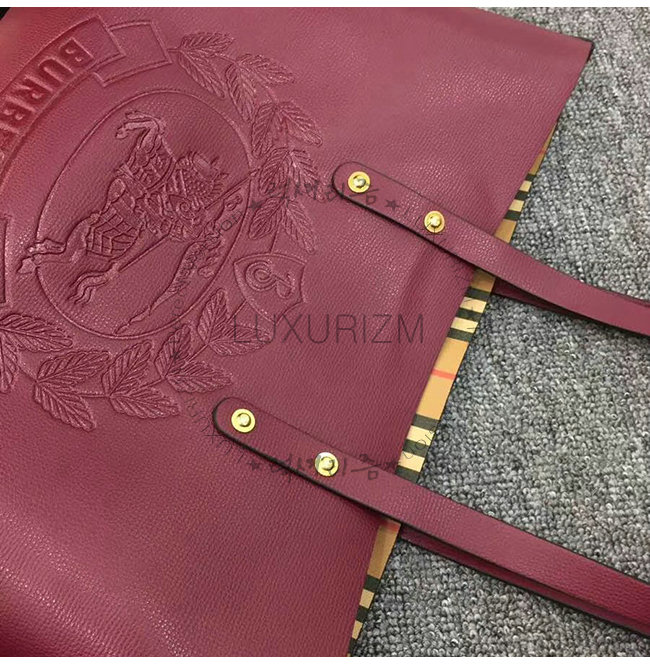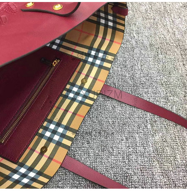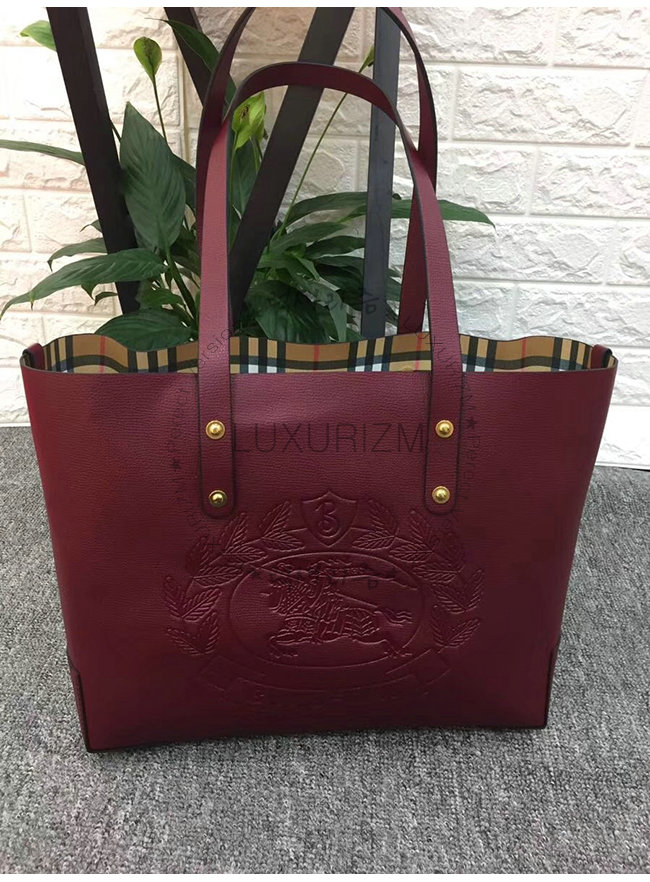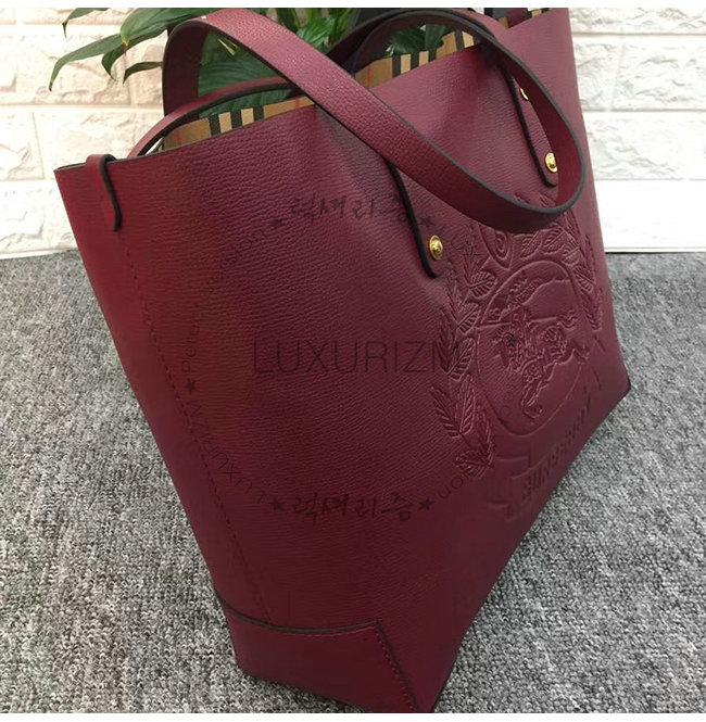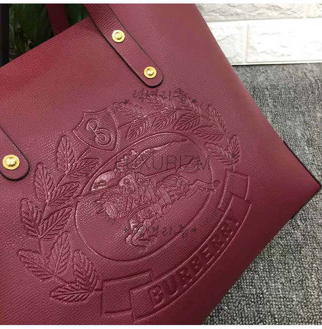 BURBERRY-40801091 버버리 버건디 송아지 가죽 스몰 엠보싱 크레스트 토트