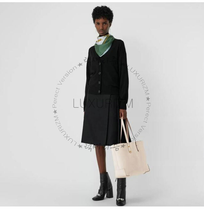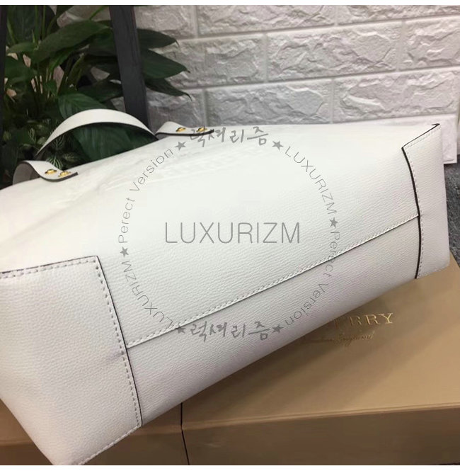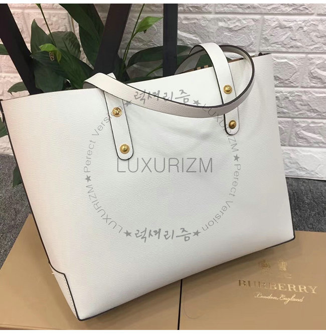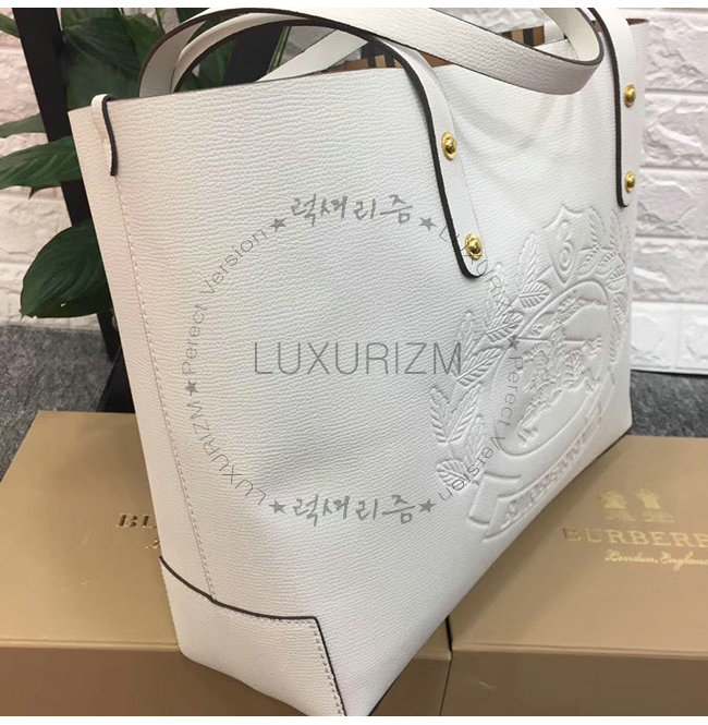 BURBERRY-40801091 버버리 화이트 송아지 가죽 스몰 엠보싱 크레스트 토트