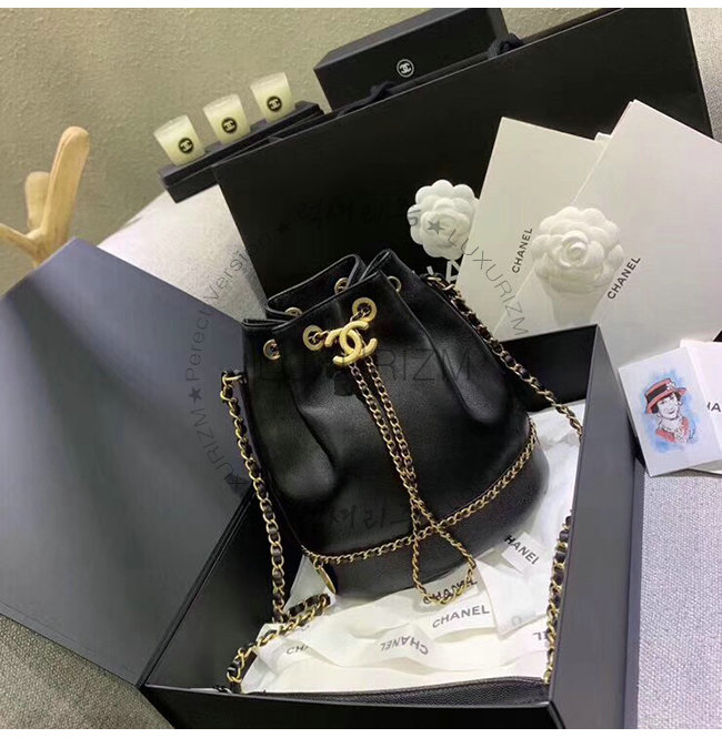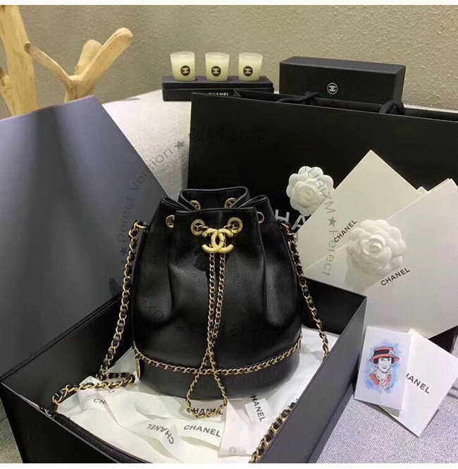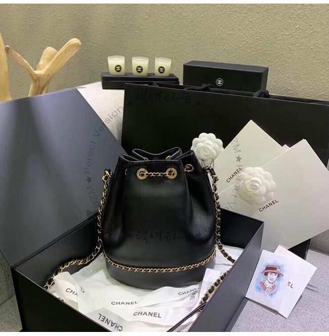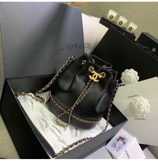 [스페셜오더]CHANEL-AS0373 샤넬 블랙 램스킨 골드메탈 드로스트링 핸드백