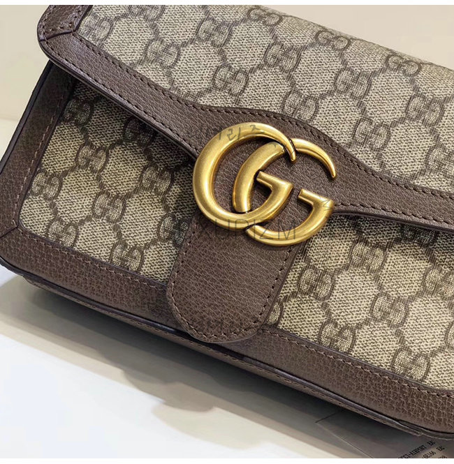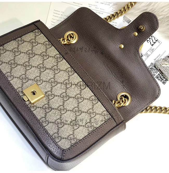 [스페셜오더]GUCCI-446744 구찌 브라운 가죽 GG 수프림 캔버스 미니 숄더백