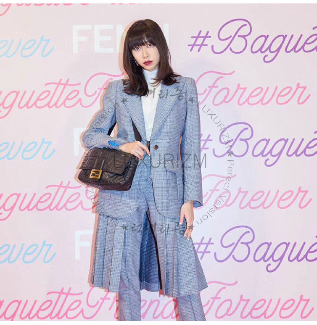 아이코닉한 라지 사이즈 바게트 가방.플랩과 FF