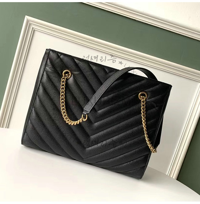 생로랑 엠보싱 토트 백에는 가죽 강화 체인