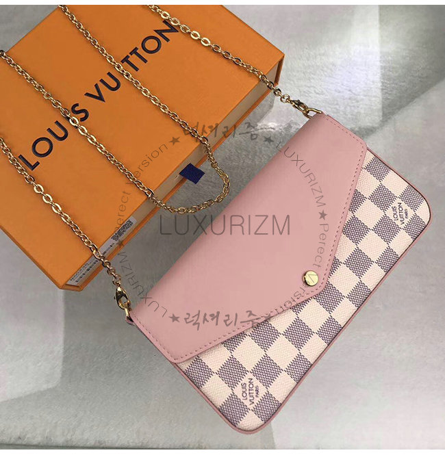 [스페셜오더]LOUIS VUITTON-N60235 루이비통 다미에 아주르 핑크 송아지 가죽 포쉐트 펠리시