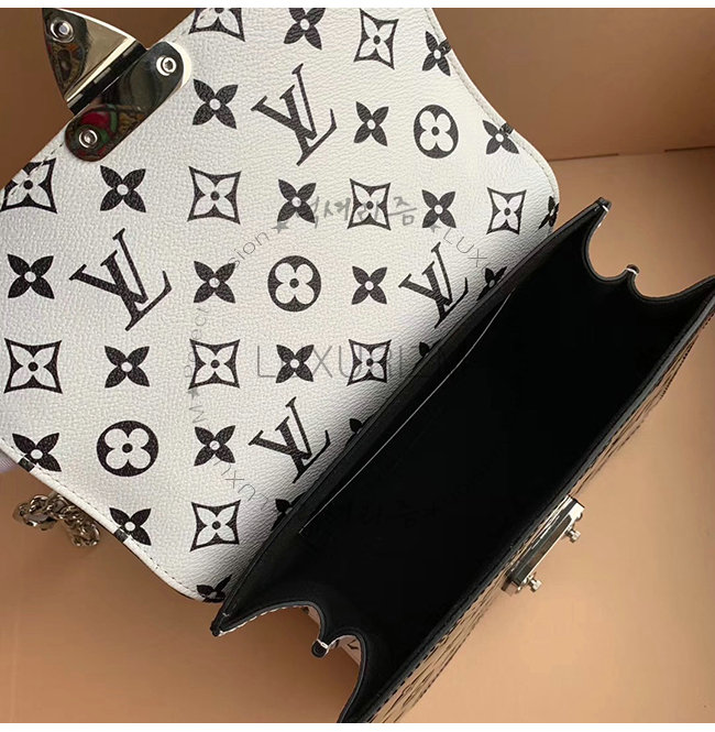 화이트 모노그램 코팅 캔버스 극세사 안감 실버 톤 금속