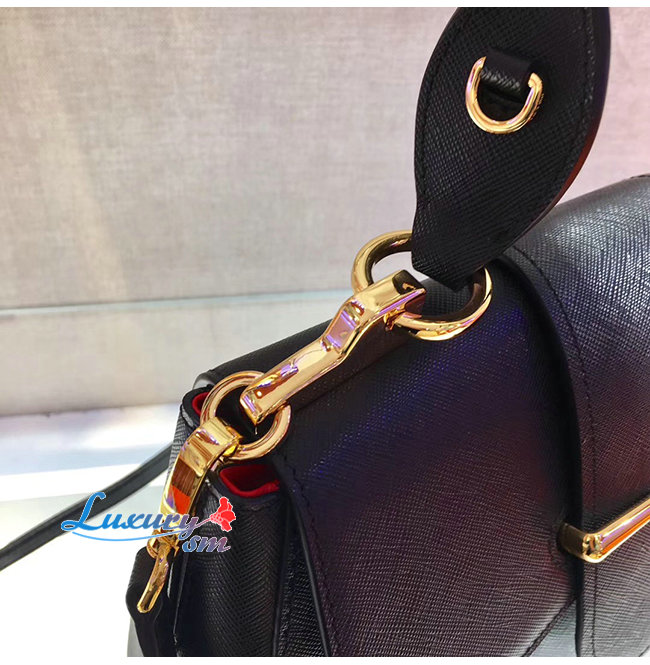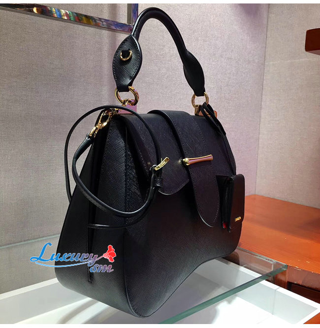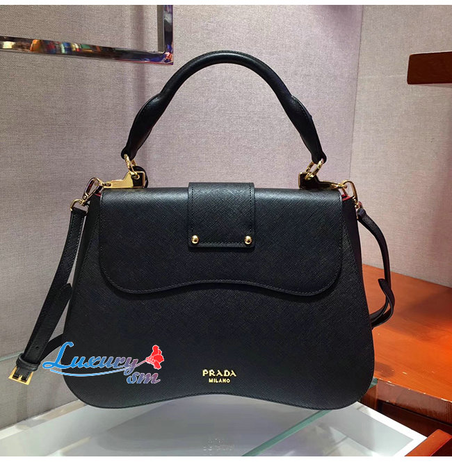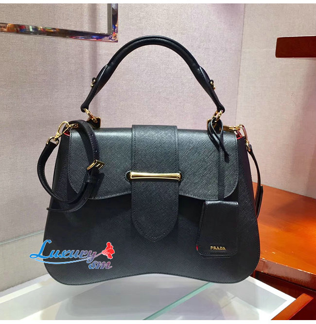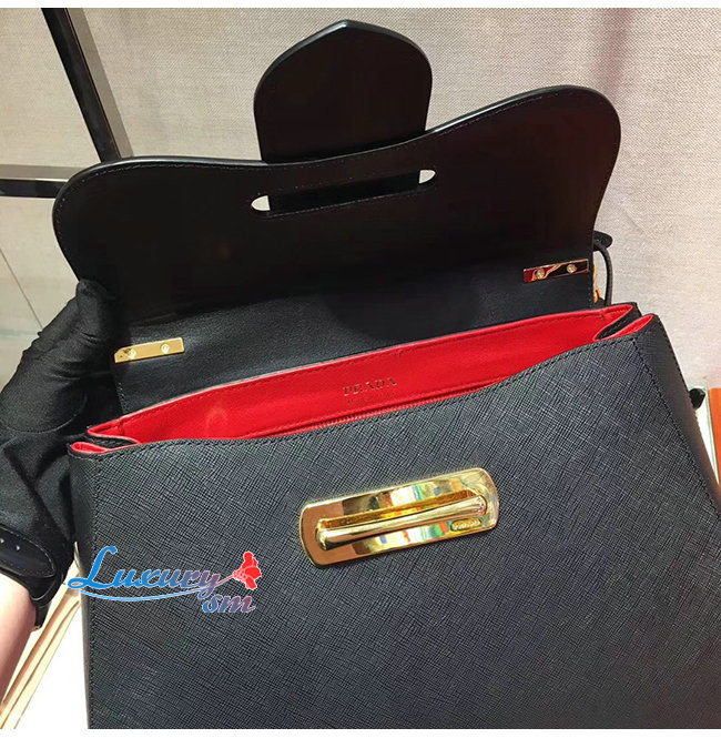 [스페셜오더]PRADA-1BN002 프라다 블랙 사피아노 가죽 대형 시도니백