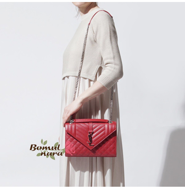 [스페셜오더]SAINT LAURENT-487206 생 로랑 레드 퀼티드 미디엄 엔벨로프 백