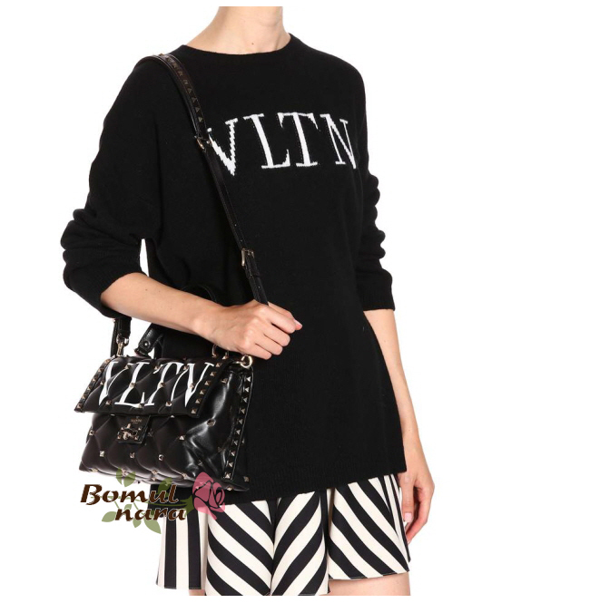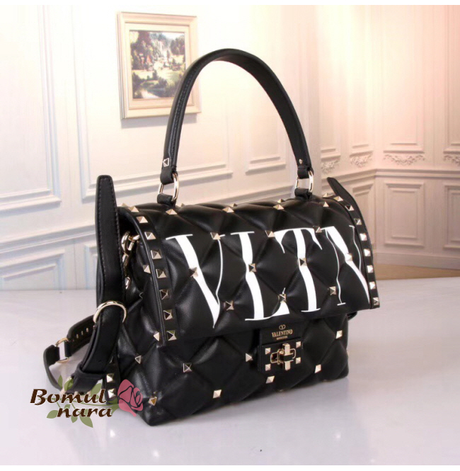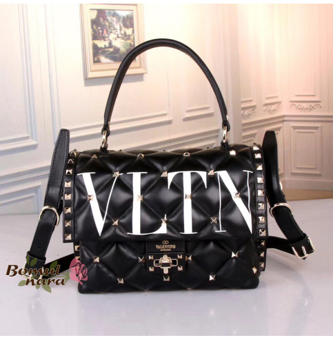 [스페셜오더]VALENTINO-RW2B0B55 발렌티노 블랙 미디엄 VLTN 캔디스터드 탑 핸들백