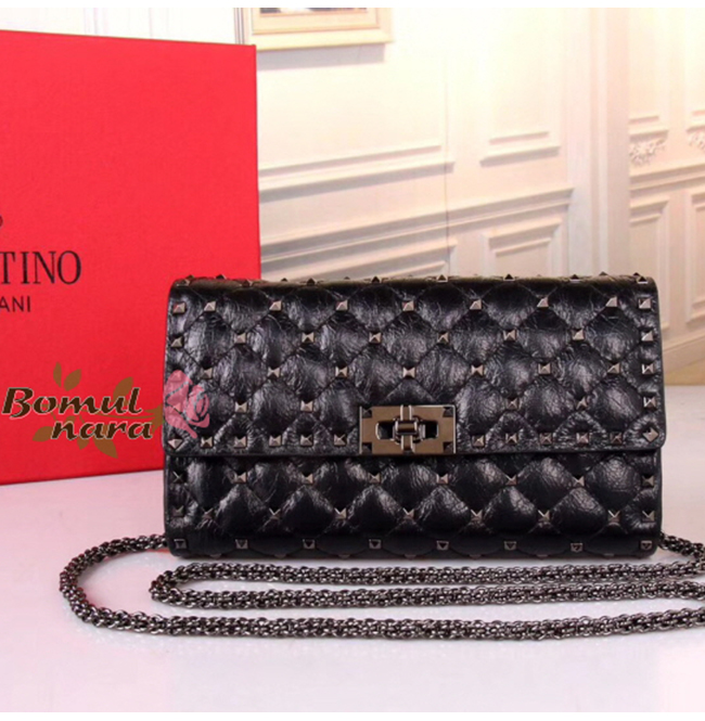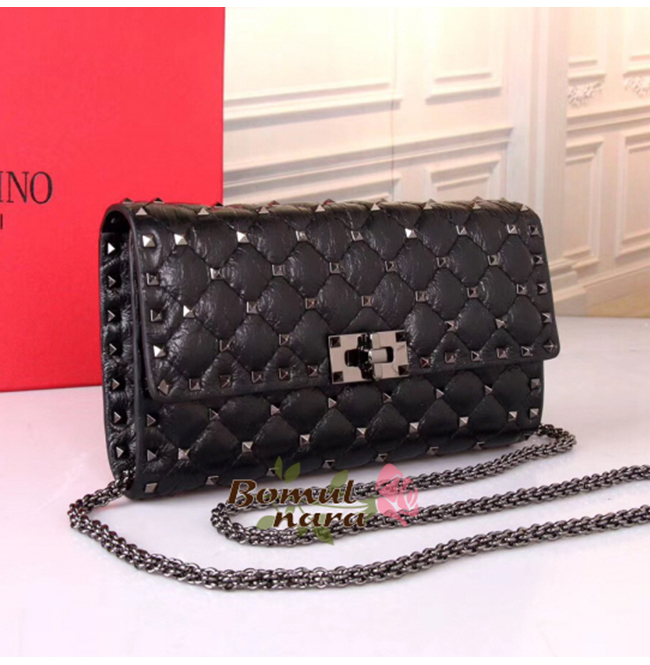 [스페셜오더]VALENTINO-SW2B0 발렌티노 블랙 크링클 양가죽 락스터드 스파이크 크로스 바디 클러치