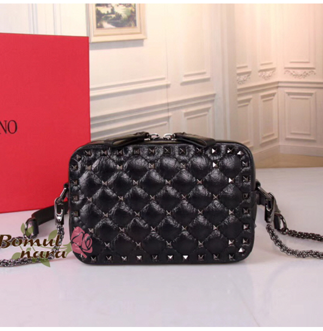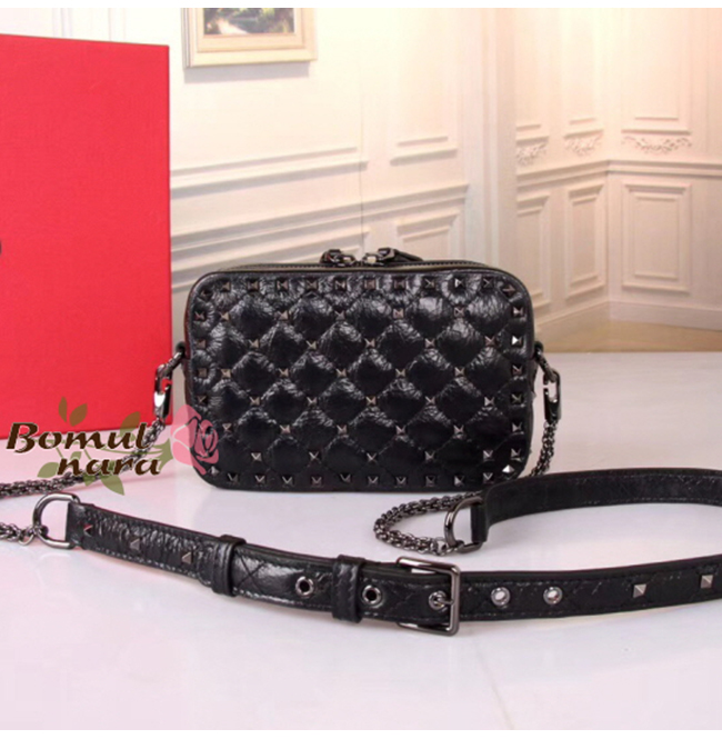 [스페셜오더]VALENTINO-QW0B0B 발렌티노 블랙 크링클 락스터드 스파이크 크로스 바디 클러치백