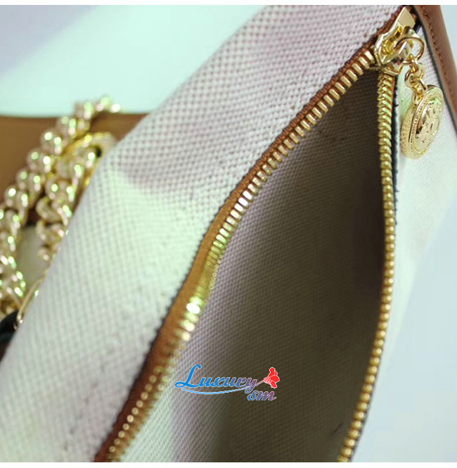 달린 탈착가능한 파우치 가죽 디테일의 더블 체인 스트랩,