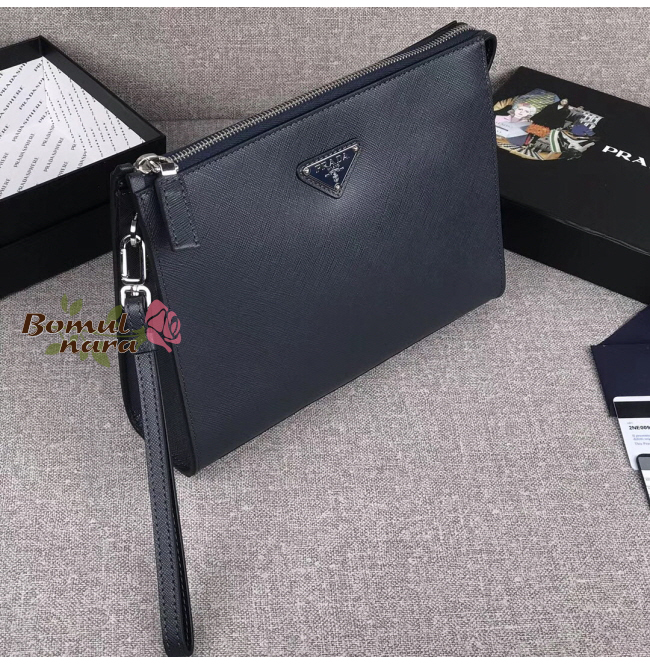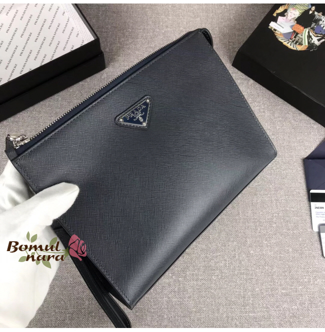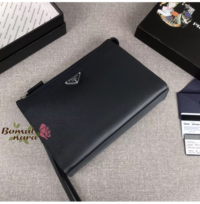 [스페셜오더]PRADA-2NE009 프라다 블랙 사피아노 트라이 앵글 로고 맨스 클러치백