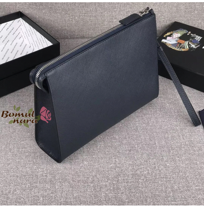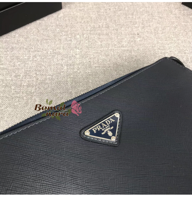 [스페셜오더]PRADA-2NE009 프라다 블루 사피아노 트라이 앵글 로고 맨스 클러치백