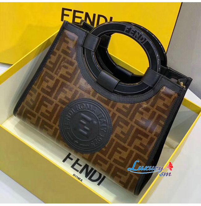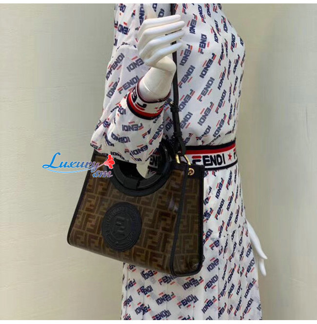 [스페셜오더]FENDI-8BH353 펜디 브라운 더블 F 페브릭 스몰 런어웨이 쇼퍼