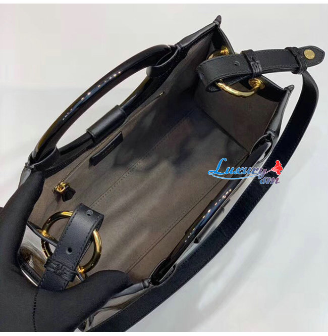 글레이즈드 패브릭소재 자카드 FF앞면에 가죽 펜디