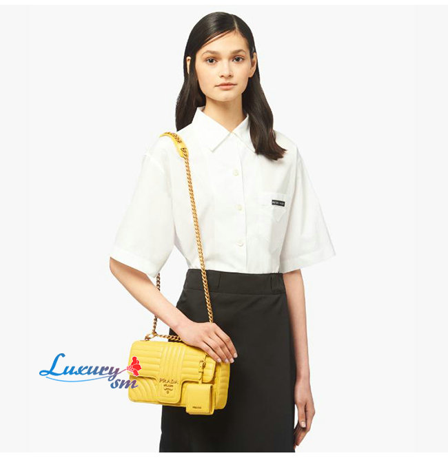 [스페셜오더]PRADA-1BD108 프라다 옐로우 송아지 가죽 다이어그램 숄더백