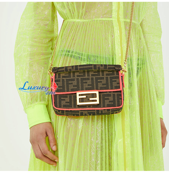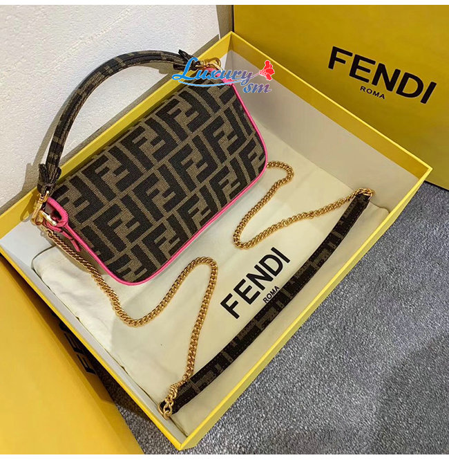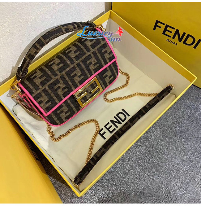 [스페셜오더]FENDI-8BS017 펜디 더블 F 페브릭 핑크 디테일 미니 바게트백