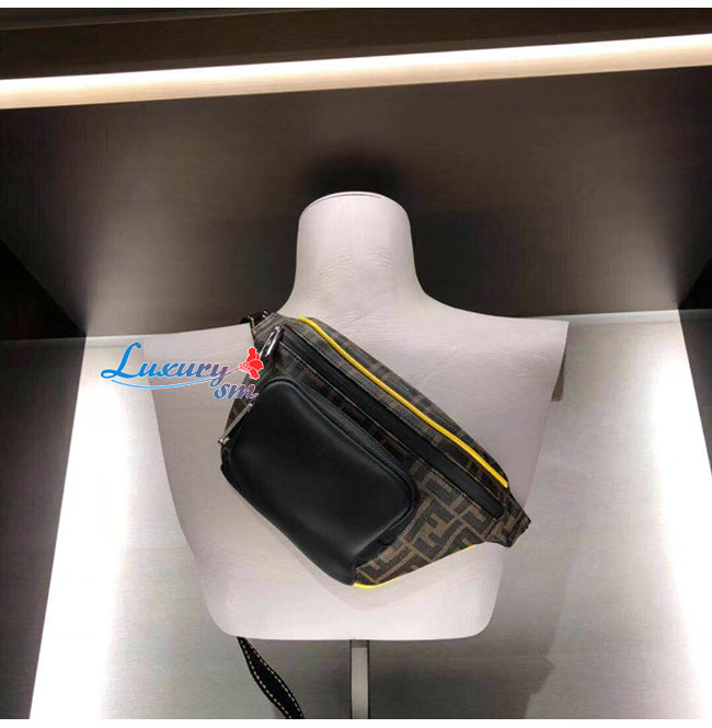 브라운 컬러의 FF 모티프, 블랙 가죽,옐로우 파이핑