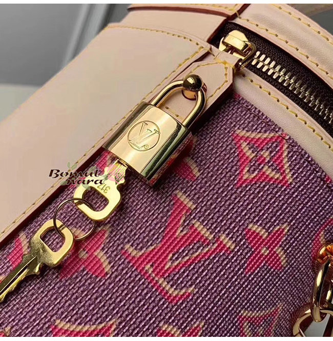 송아지가죽 소재에 밝은 핑크색의 모노그램 LV팝 프린트를