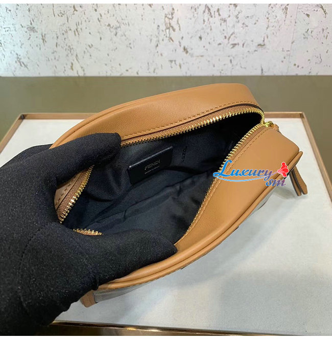글레이즈드 패브릭 소재 및 브라운 FF 모티프 장식 라운드