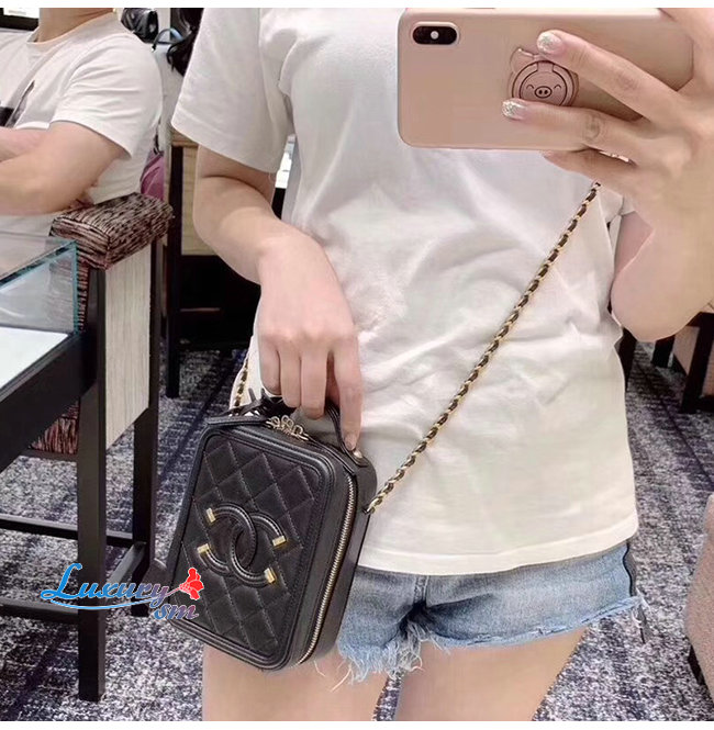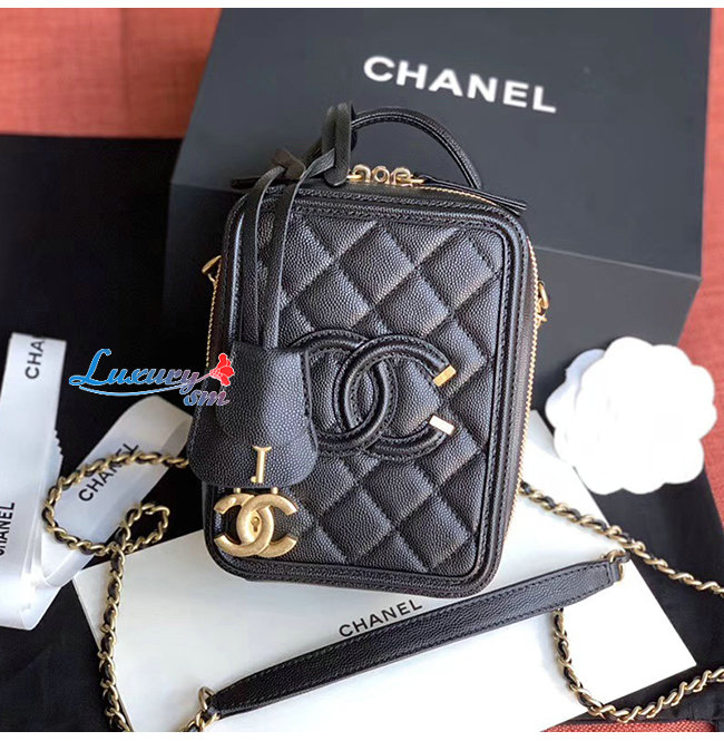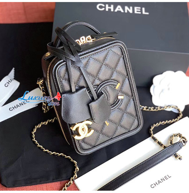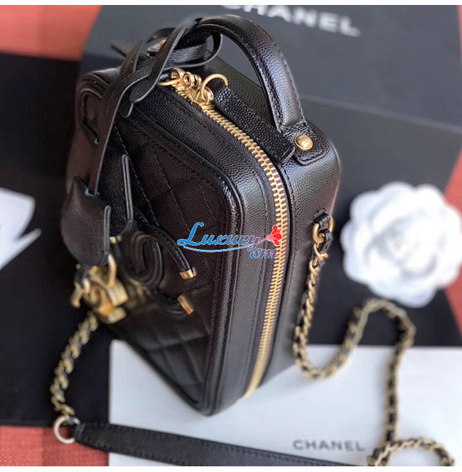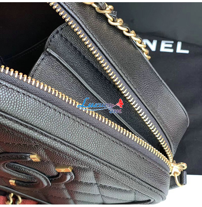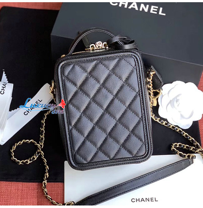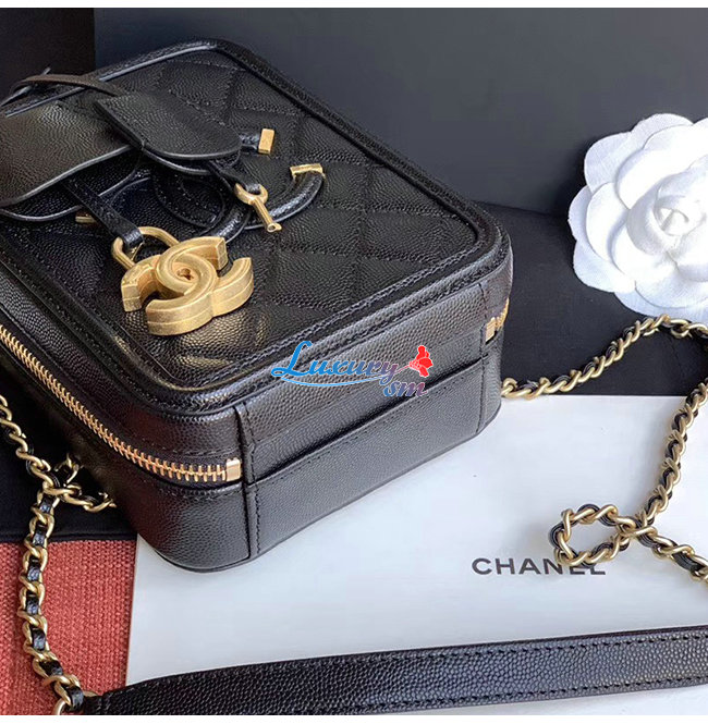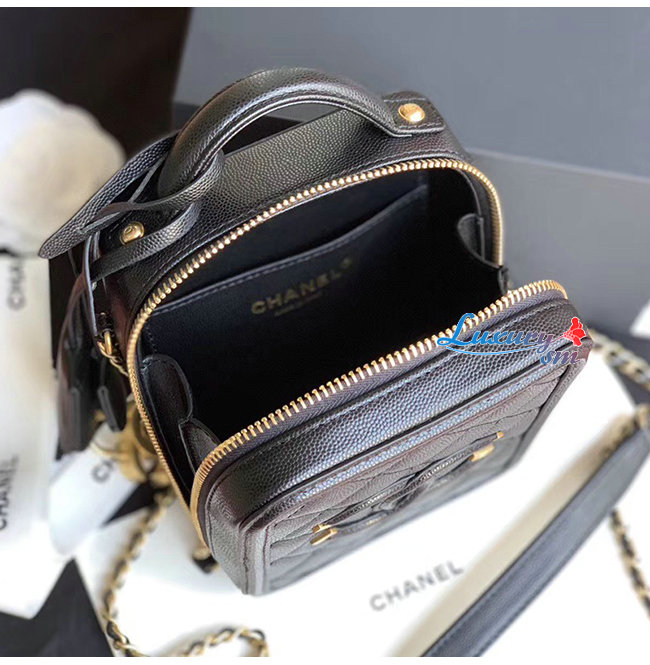 [스페셜오더]CHANEL-AS0988 샤넬 블랙 그레인드 카프스킨 골드메탈 코스메틱 케이스
