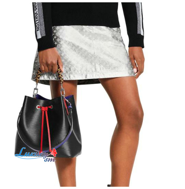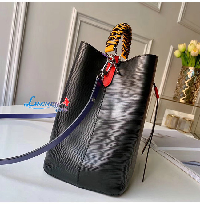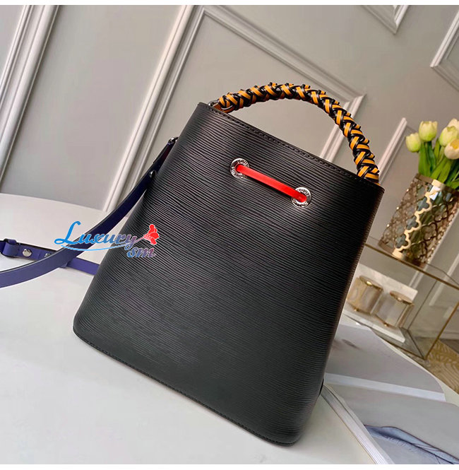 이는 네오 노에 버킷 백은 땋은 듯한 디테일의 정교한