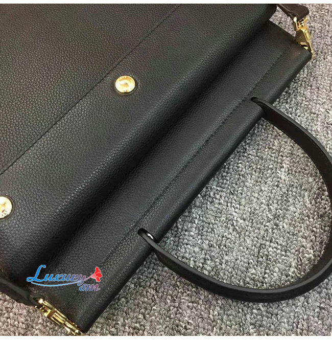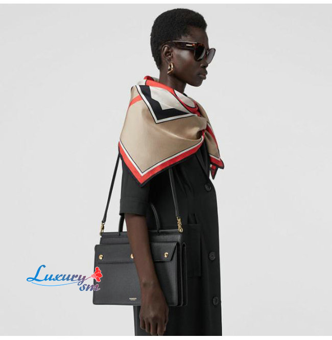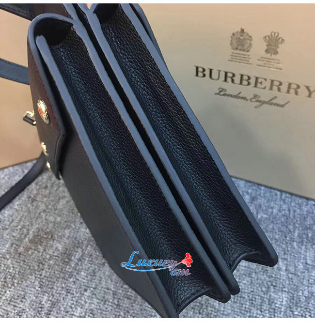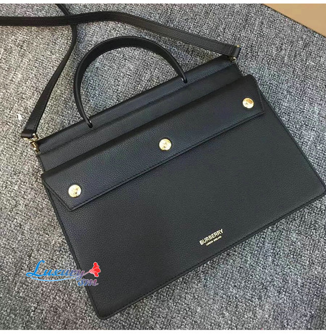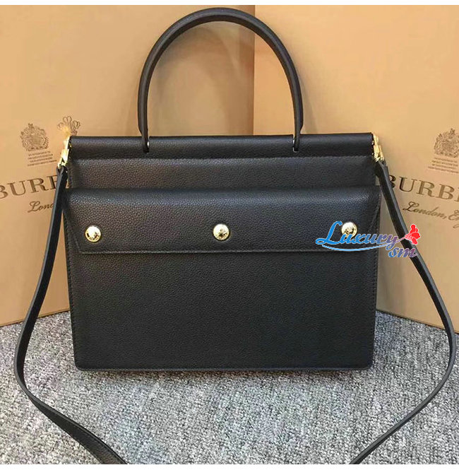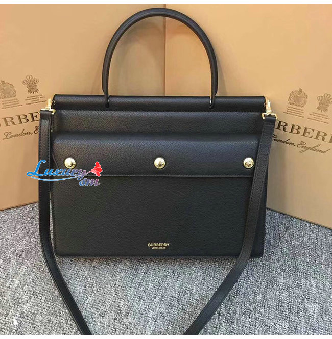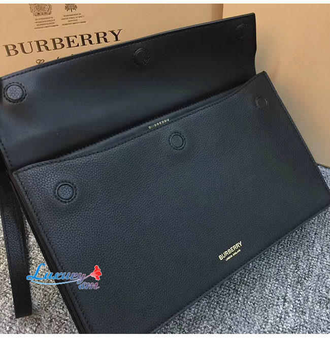 [스페셜오더]BURBERRY-80146241 버버리 블랙 송아지 가죽 스몰 포켓 디테일 레더 타이틀 백