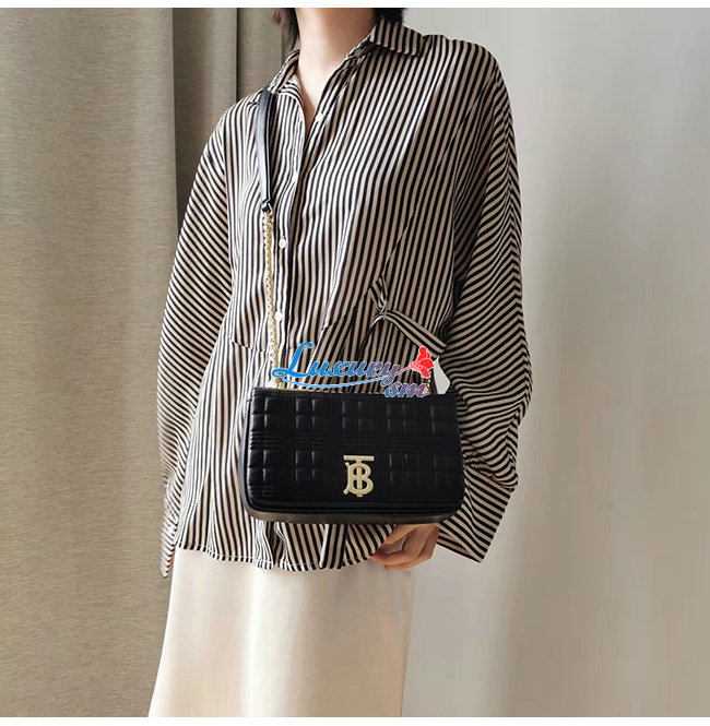 [스페셜오더]BURBERRY-80214921 버버리 블랙 양가죽 스몰 퀼트 체크 롤라 백