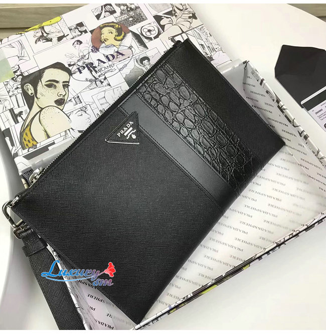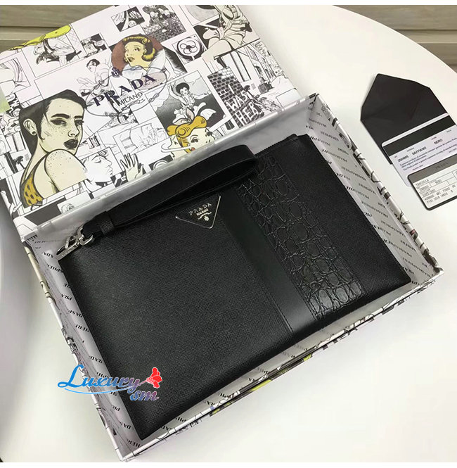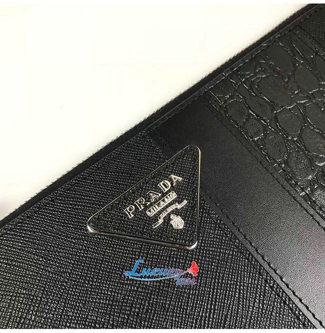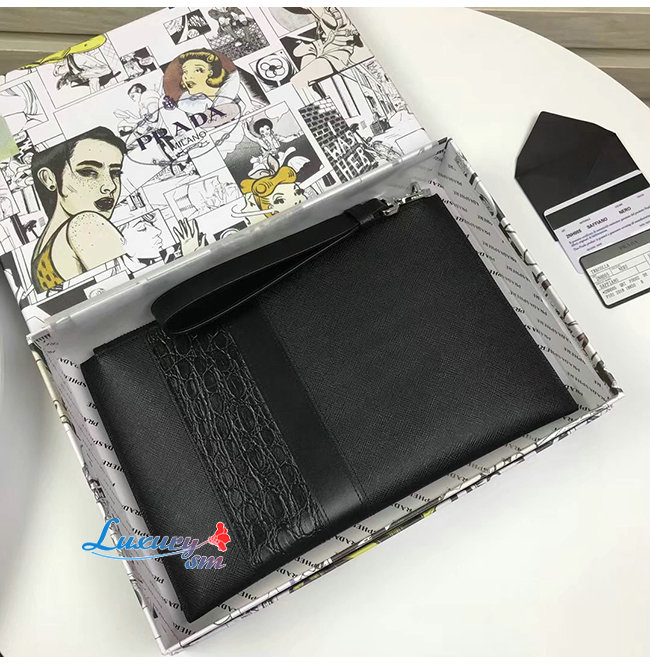 [스페셜오더]PRADA-2NH005 프라다 블랙 사피아노 가죽 파우치