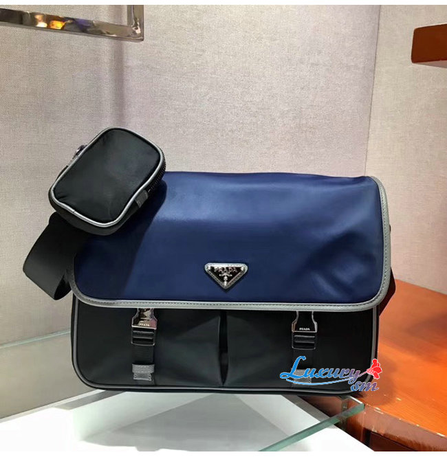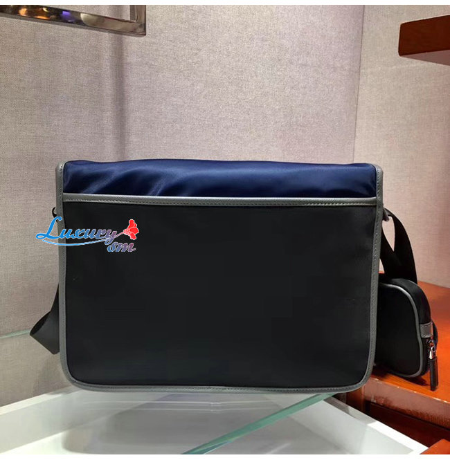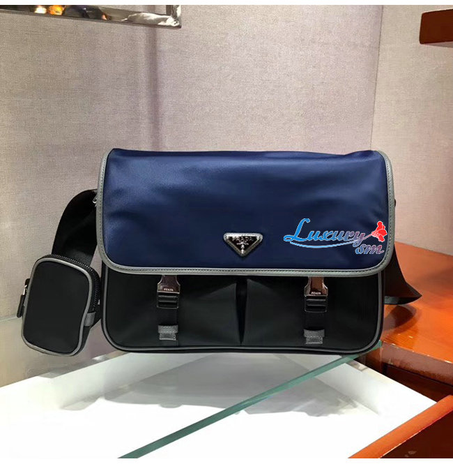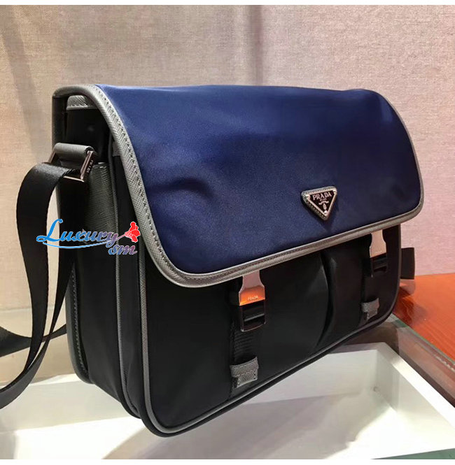 PRADA-2VD768 프라다 사피아노 가죽 트림 장식 나일론 플랩 메신저 백