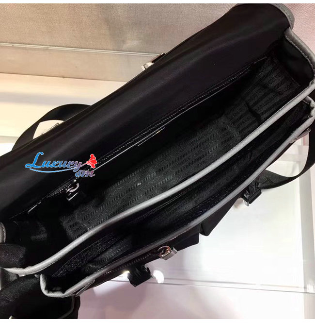 [스페셜오더]PRADA-2VD768 프라다 블랙/그레이 사피아노 가죽 트리밍 나일론 백